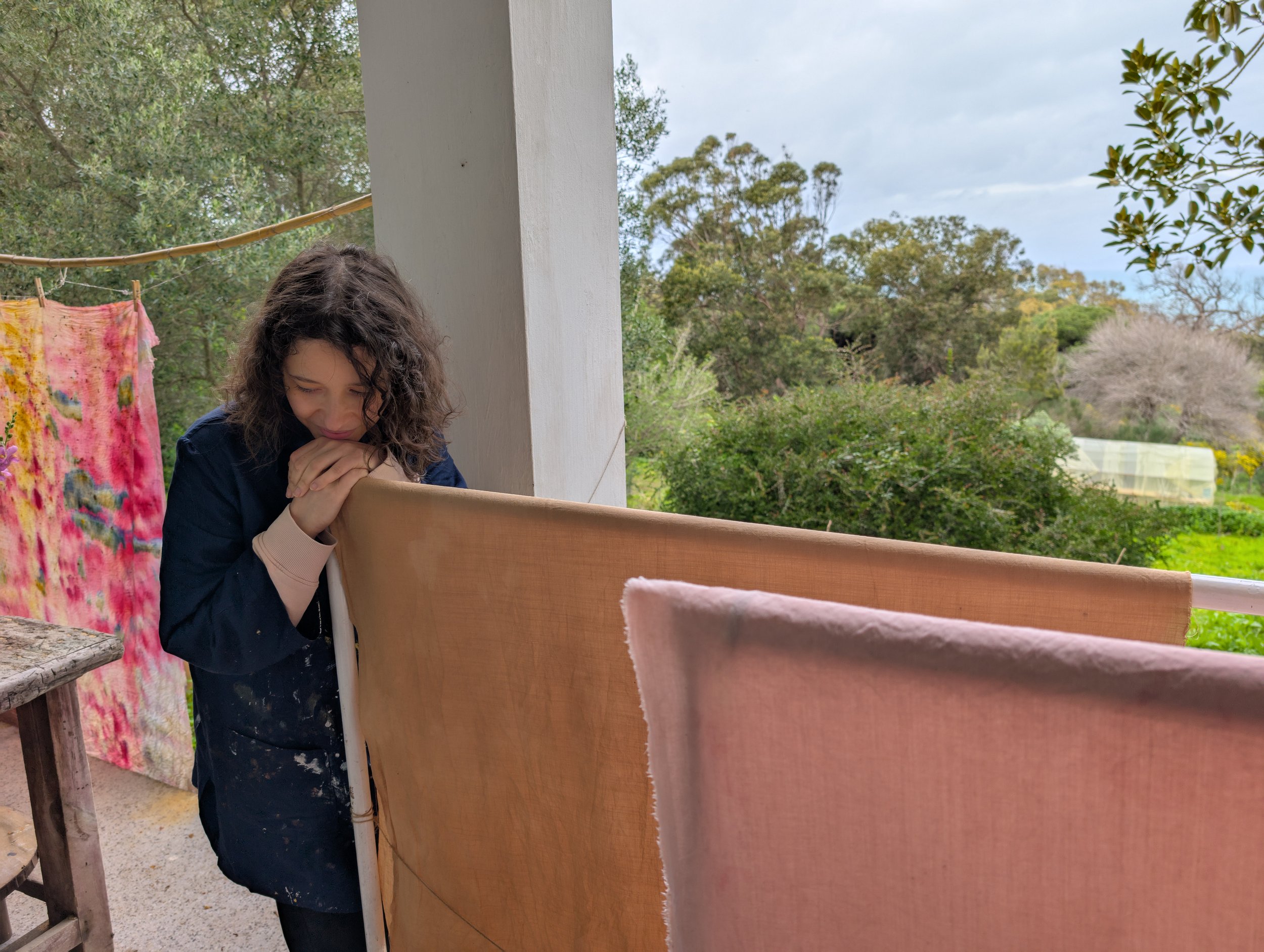 In this phase of the project, Soukaina deepens her engagement with materiality by incorporating natural and experimental dyeing methods. The residency is an opportunity for her to research, test and develop new techniques for dyeing, colouring and texturing fabrics to expand the layered and textural aspects of her work. She aims to further explore the possibilities of expressive fabric manipulation to evoke vulnerability, fragmentation and transformation in dyed textiles, as well as exploring skin tones by experimenting with different shades and tones.